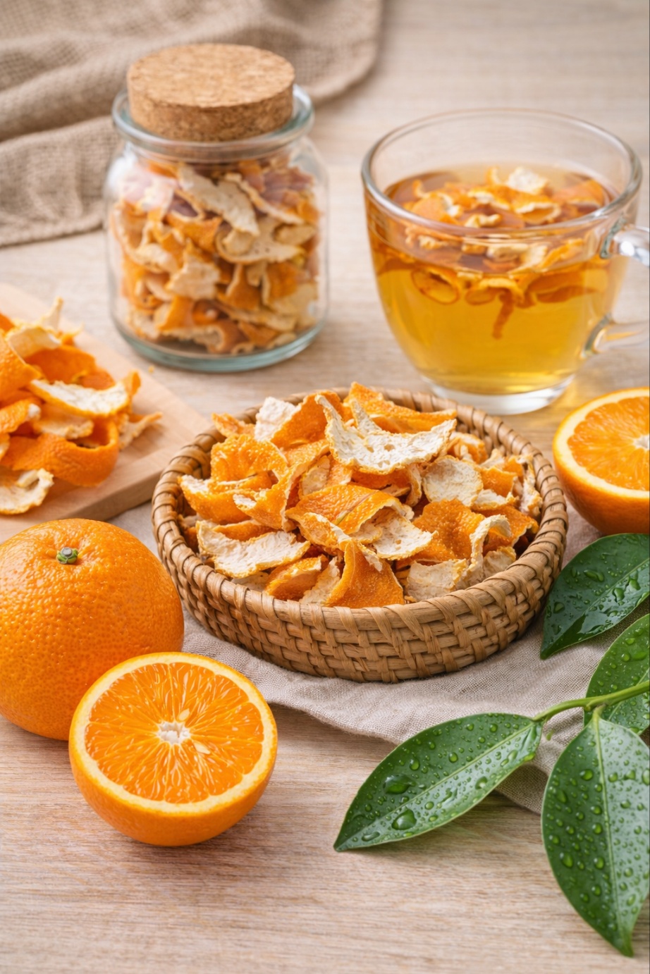 말린 감귤 껍질은 차로 마시거나 음식 재료로 사용할 수 있다.